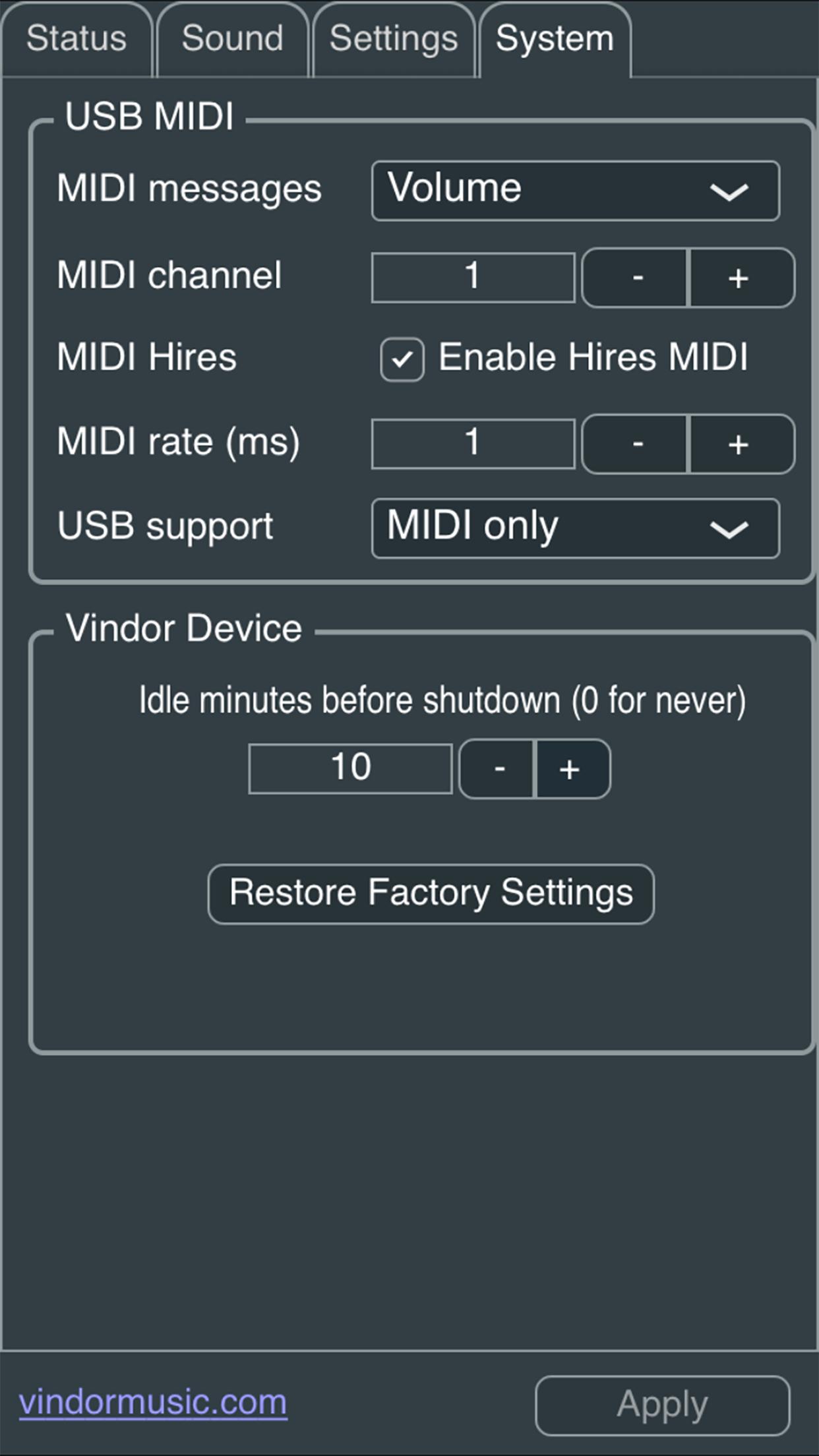 The Vindor ES1 is an affordable and easy-to-use electronic saxophone. This app allows you to customize the sounds and settings on the ES1.