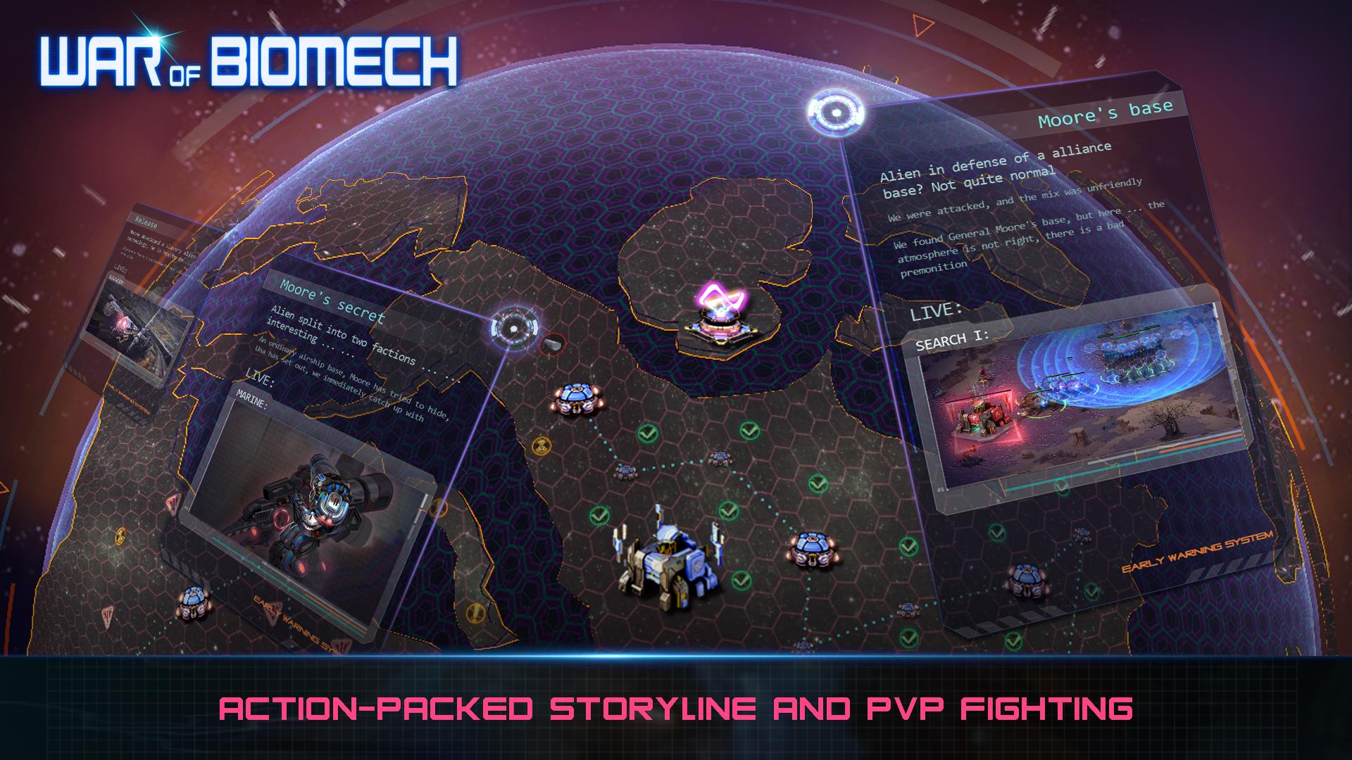 War of BioMech is a Sci-Fi real-time strategy game featuring classic-looking 2.5D graphics with rich details. Build your base, command powerful Heroes with special abilities and guide your mechanized army into adrenaline-filled PvP battles with intuitive touch controls. Explore a post-apocalypse earth plagued by alien creatures as you battle through shattered cities, wind-eroded landforms and alien-dominated ice field, and do whatever you can to bring peace and order back to the planet.
