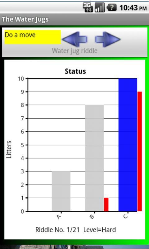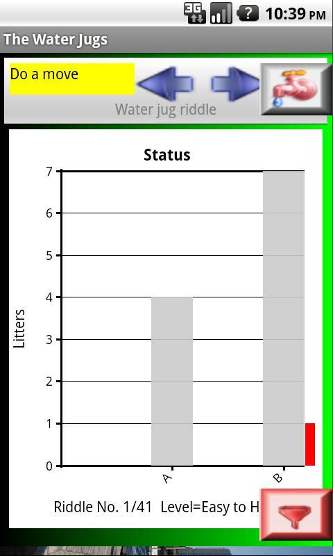 The levels consist of two to four jugs and the goal is is to pour some or all of the contents