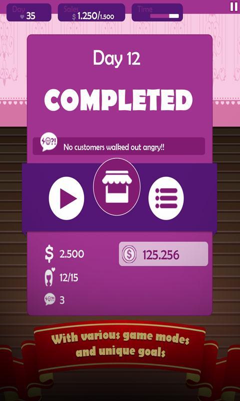 In this management game you need to help your customers to get the right dress, fit the dresses and of course get your money!
