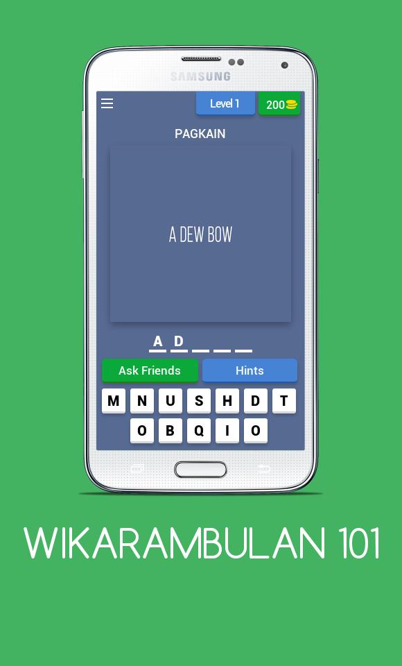 WIKARAMBULAN 101 is a word (can be a name of a person, place, title of a song or movie, or food) Guessing game and is based on one of the Philippines' Sunday noontime show's segment "Wikarambulan".
