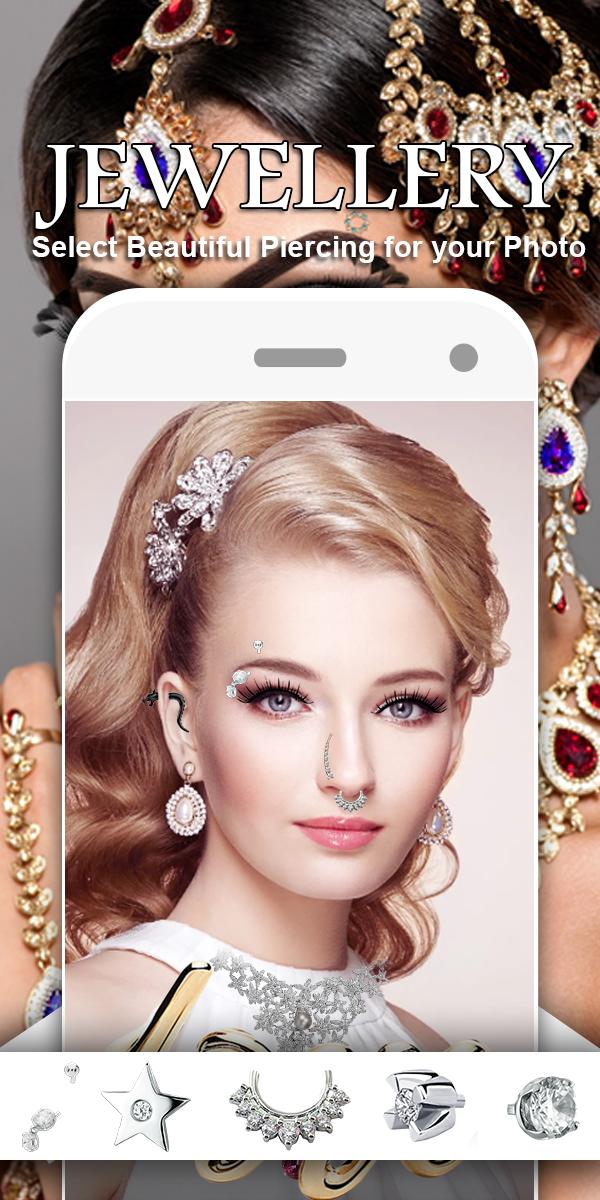 Woman Jewelry Photo Editor has given you the chance to look super kawaii with hundred of Woman Jewelry effect / necklace / forehead / crown / earrings / eyebrows / eyelashes / and many stickers...