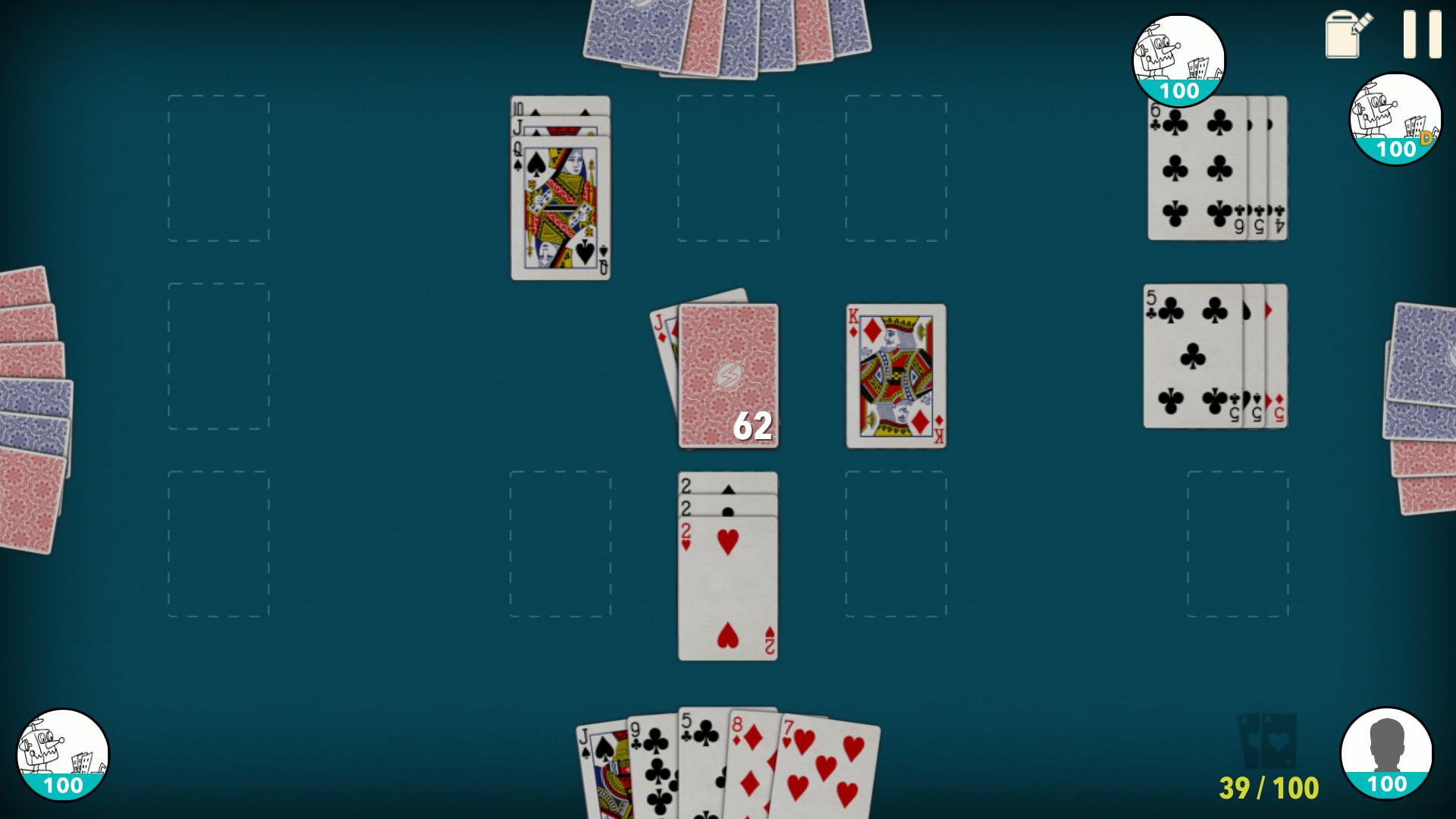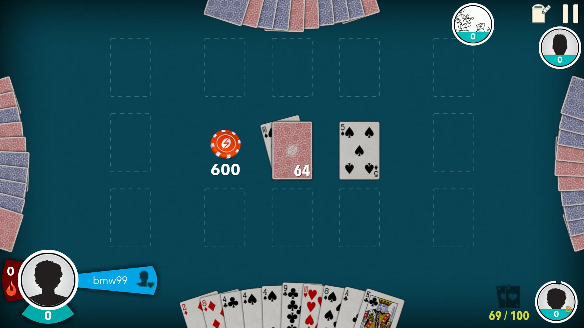 Yanik is played with 106-card pack (2 packs of 52 and 2 Jokers); each player is dealt 10 cards and the aim is to finish the cards in hand by forming set and sequence combinations, before other players as in all of the Rummy type games. But be careful, the player reaches 101 points is thrown out from the game and the only way to return to the game is to pay the game fee that increases exponentially each time you’re thrown out. The main object is to throw all other players out at once and get all the chips on the table.