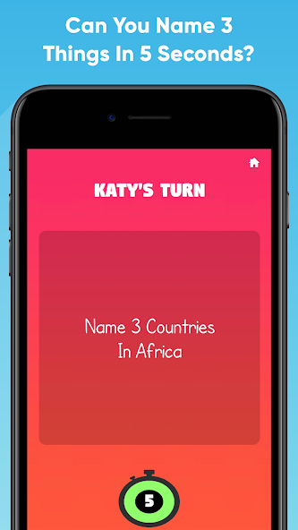 - 有5秒钟的时钟,玩家必须命名3件事。
