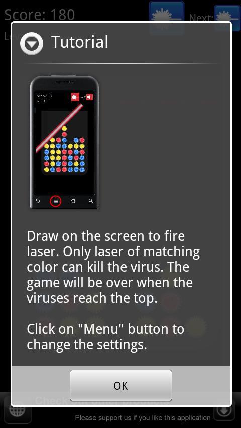 您必须控制激光束,并在伸出病毒之前油炸病毒。