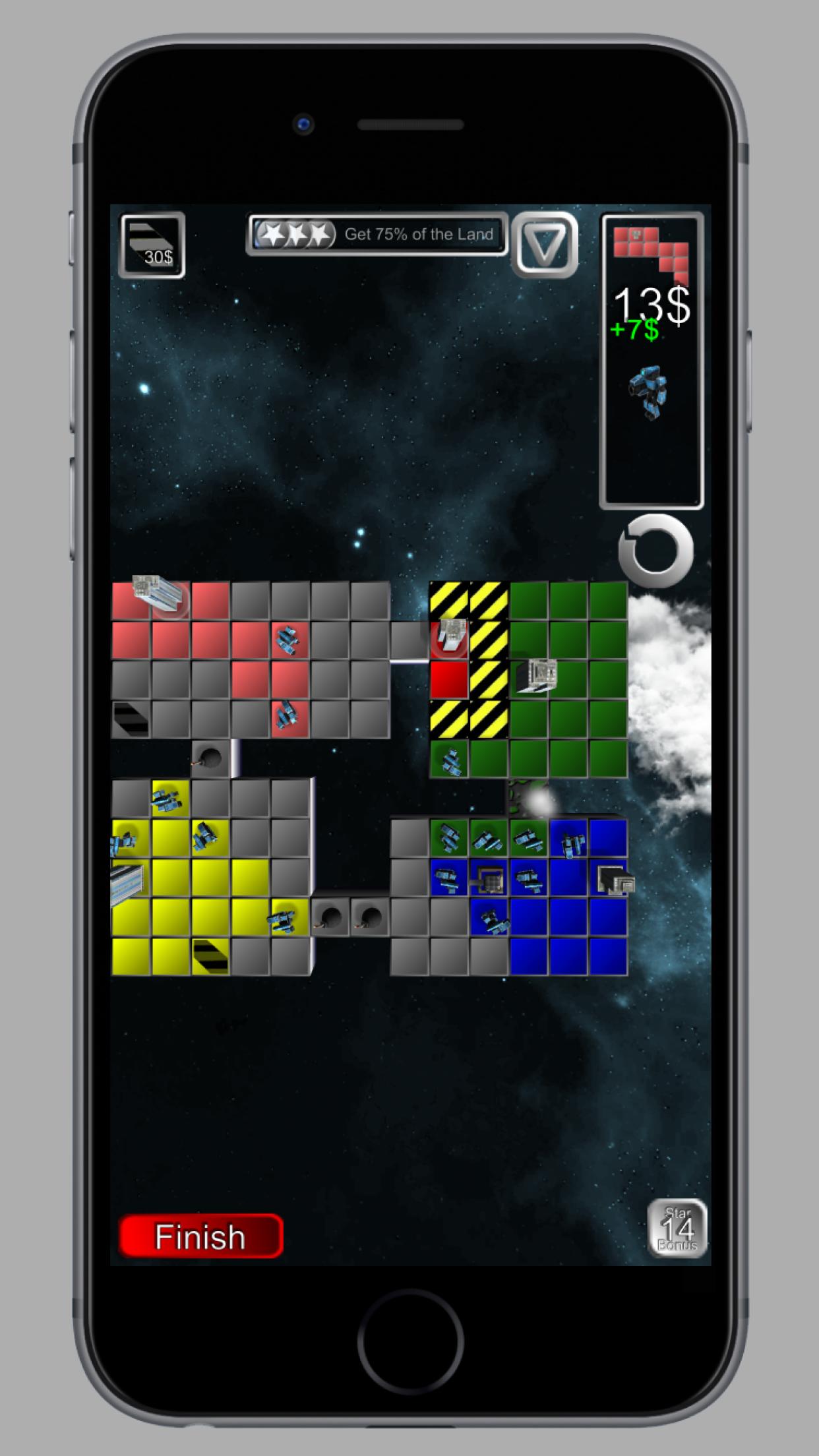 扩大您的领土,建造强大的机器人并赢得比赛。