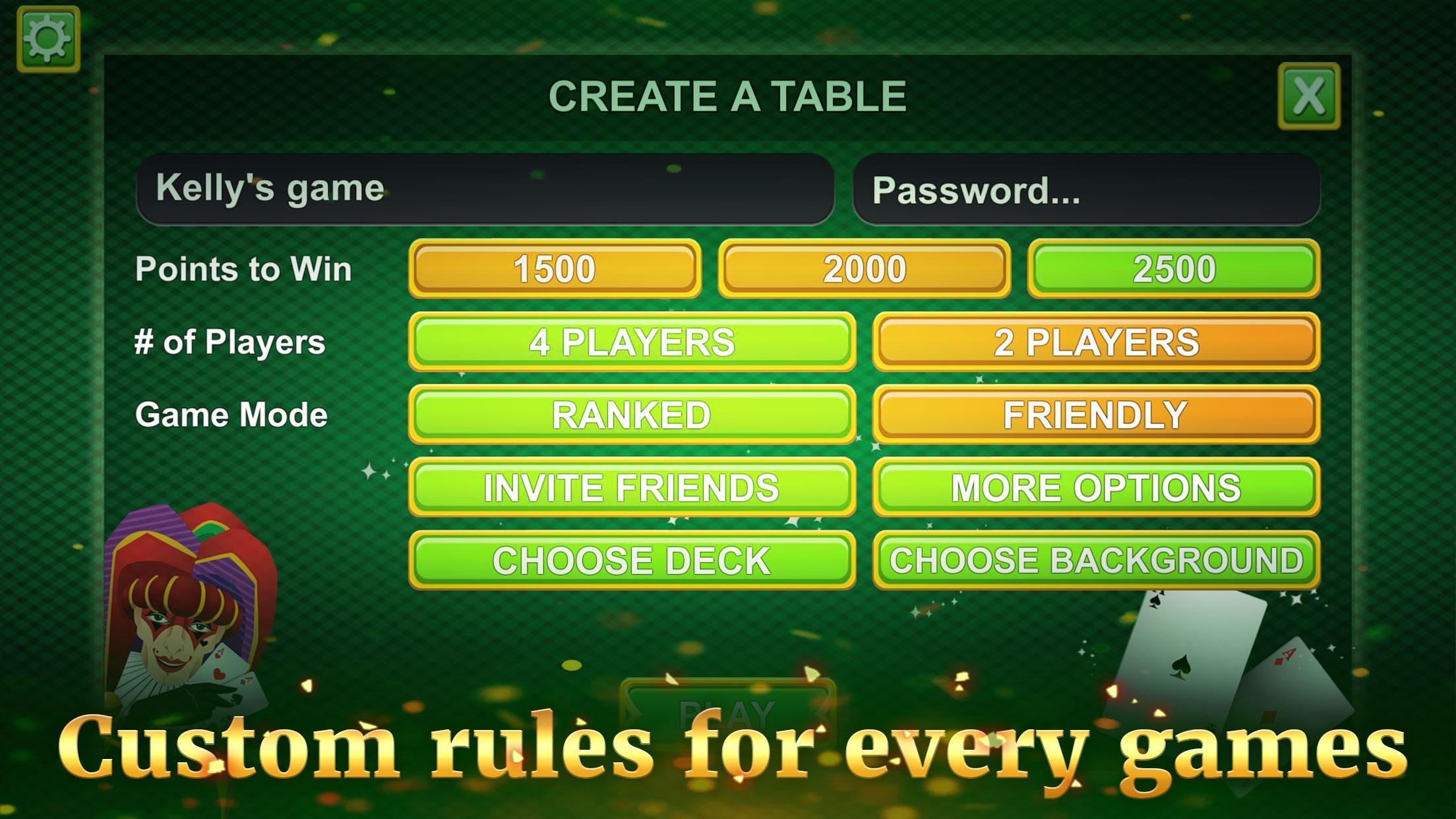 这个游戏中的所有硬币都是虚拟货币,而这款Brazilya是一款非常具有挑战性的Buraco游戏。 Brazilya还具有多人游戏模式,您可以在其中与朋友一起玩这个游戏,或邀请新朋友加入挑战。