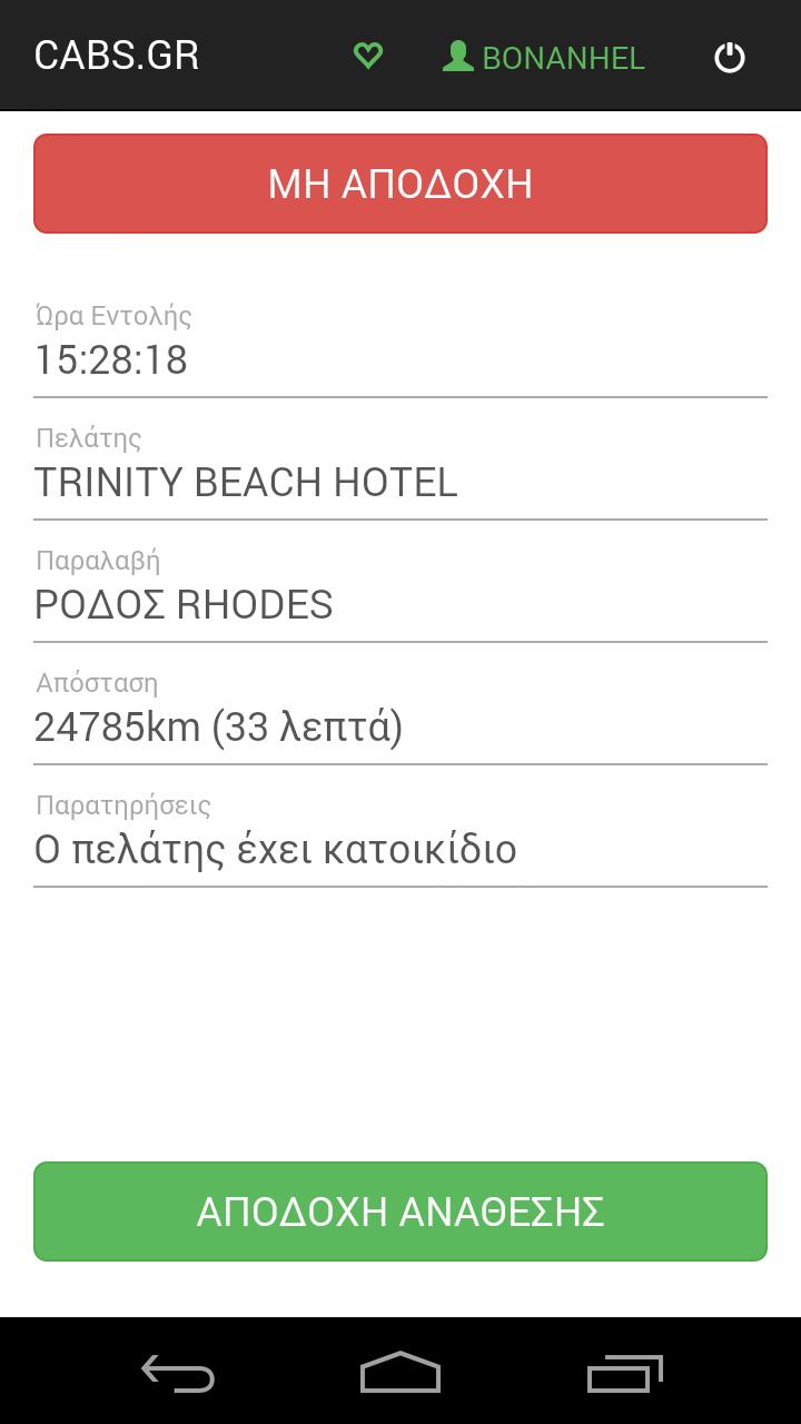 该应用程序使驾驶员可以接受或拒绝传入的路线。