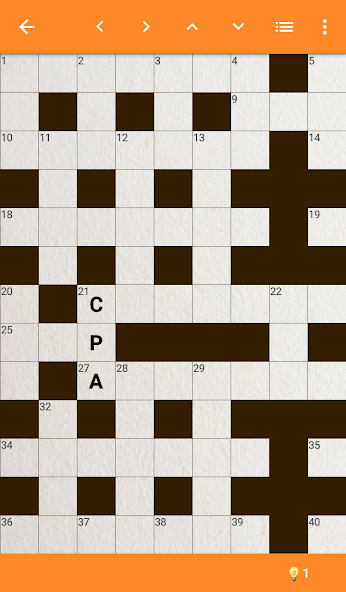 该界面旨在确保使用对话的视力障碍或盲人轻松使用。上栏允许在定义之间轻松导航。该侧可伸缩的可让您概述填字游戏定义。
