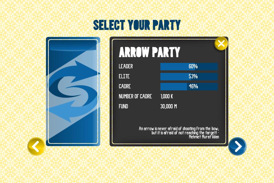 免费模拟游戏。扮演政党的领导人,获得多数票。感受对其他两个试图将您扮演黑色竞选的政党的感觉。在10个艰难的星期内管理您的精英团队和干部。设置您的政策,选择谁将成为您的经理并提高党派声誉,直到D日为止。