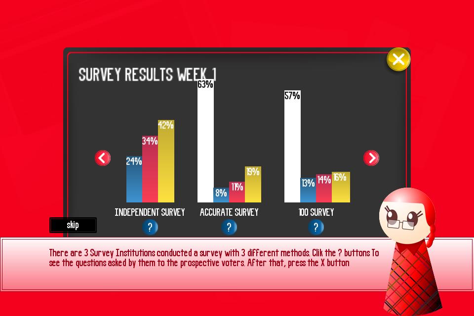 您可以将议程设置为创建广告,或进行广告系列,或者采取最佳策略,或者您想管理团队,而不要忘记筹集资金。没有资金没有游戏。赢得您的选民的心并成为赢家。