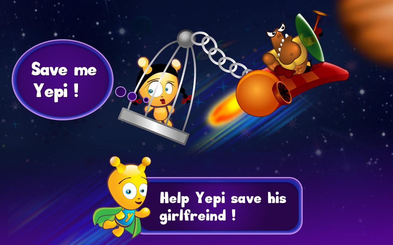 Escape from Yepi Planet ,然后冒险进入未知的人。战斗恶毒的外星人,试图征服您的家乡星球,并在战斗谜语,测验和有趣的外星人时拯救您所爱的女友。