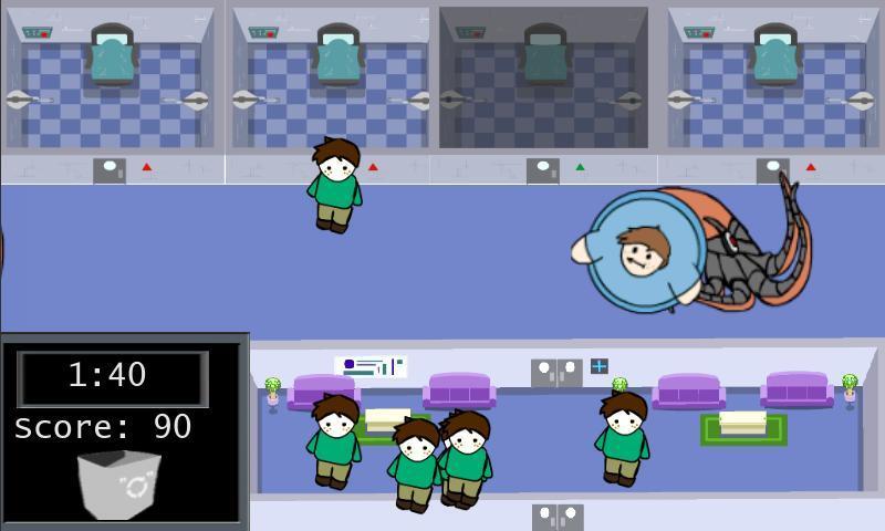 您有两分钟的时间将人类拖入热情好客的床。小心机器人必须“回收”。当心机器人和滚动的患者,他们会压碎讨厌的人类……(非常可悲)。