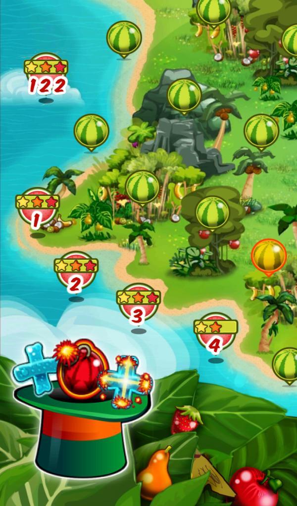 - 匹配3个或更多水果,看着它们变成多汁的气泡