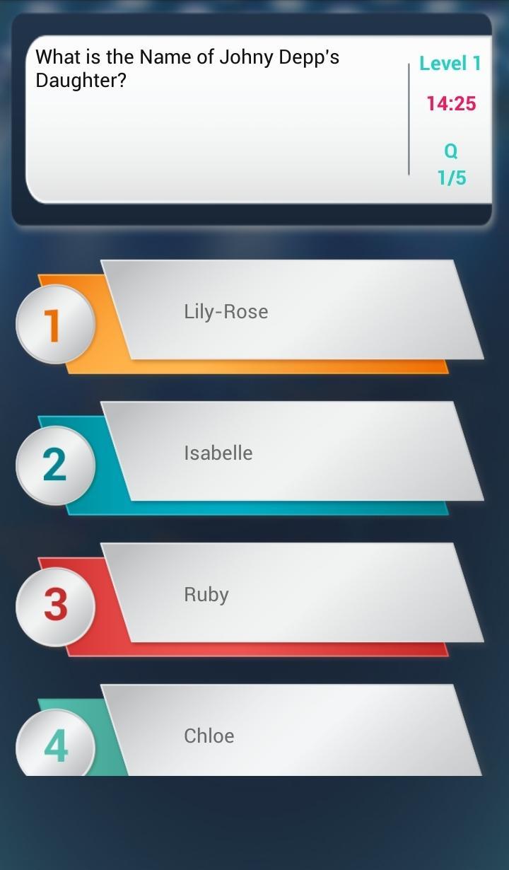 Johnny Depp Quiz游戏中有不同的级别,每个级别都包含有关Johnny Depp的许多有趣的问题。您需要达到所需的标准以解锁水平。 Johnny Depp Trivia有趣,快速易于使用。