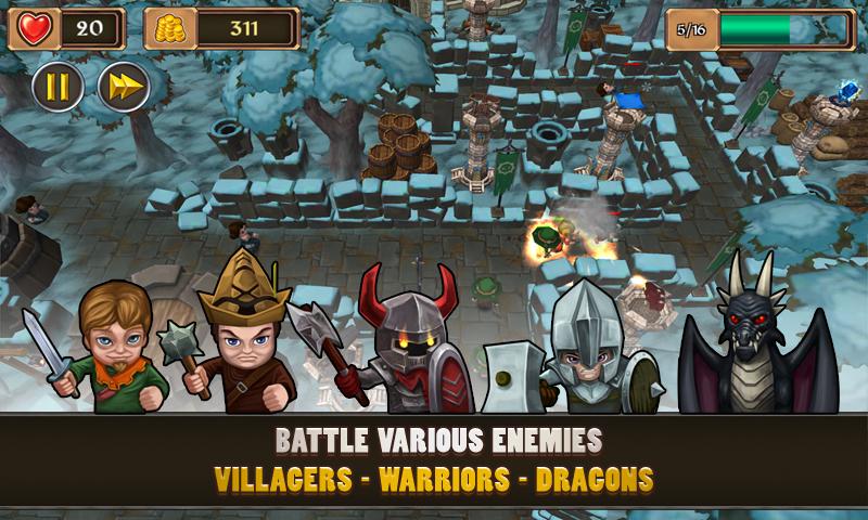 殿下,我们的王国有风险。我们面临着巨大的危险!不仅村民,还有少女,勇士,法师,乌鸦,蝙蝠,老鹰和龙,试图摧毁我们的帝国。捍卫您的宝座并立即停止他们!