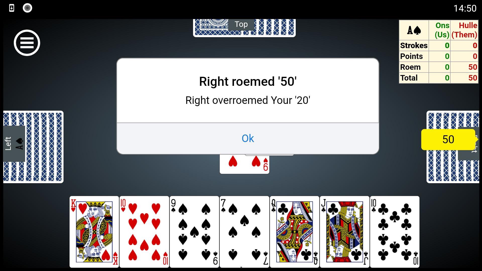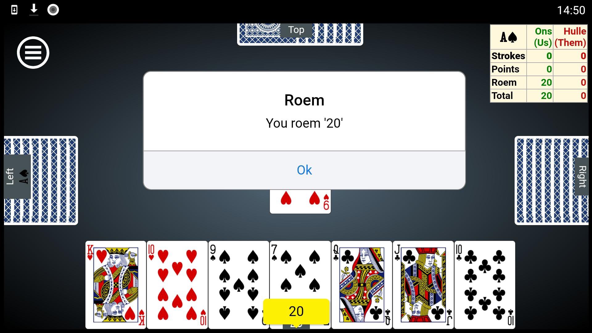 这个南非版本与荷兰版本有很大不同,可以说是受到夸祖鲁纳塔尔省非常流行的另一种南非纸牌游戏Thunee的影响。例如,其中一个区别是,罗姆是基于手中持有的牌的特定顺序,而不是在一墩牌中丢弃的牌。