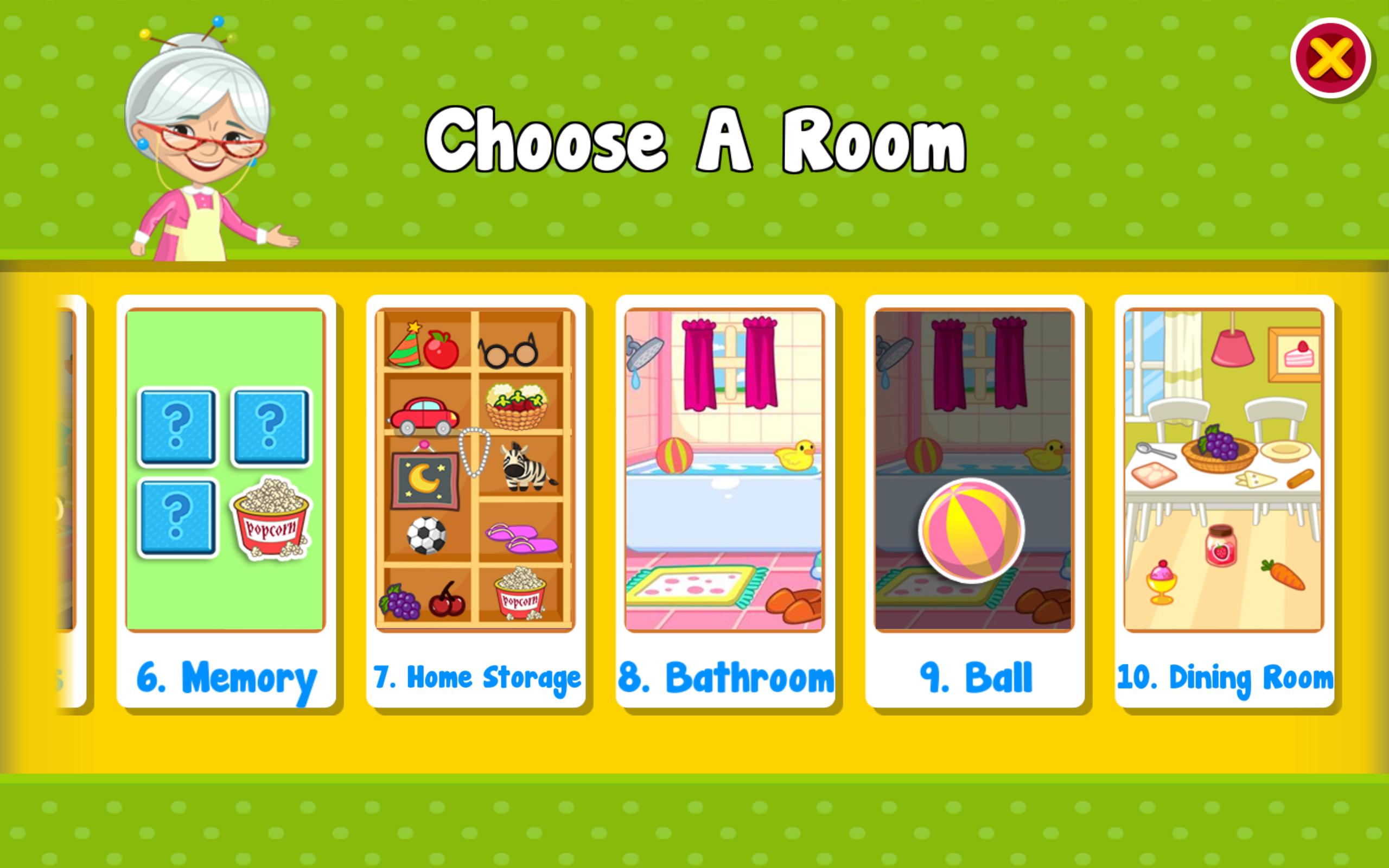 在这个游戏中,您的孩子可以在各个房间中找到不同的隐藏物体来参观奶奶的住所,并帮助奶奶。