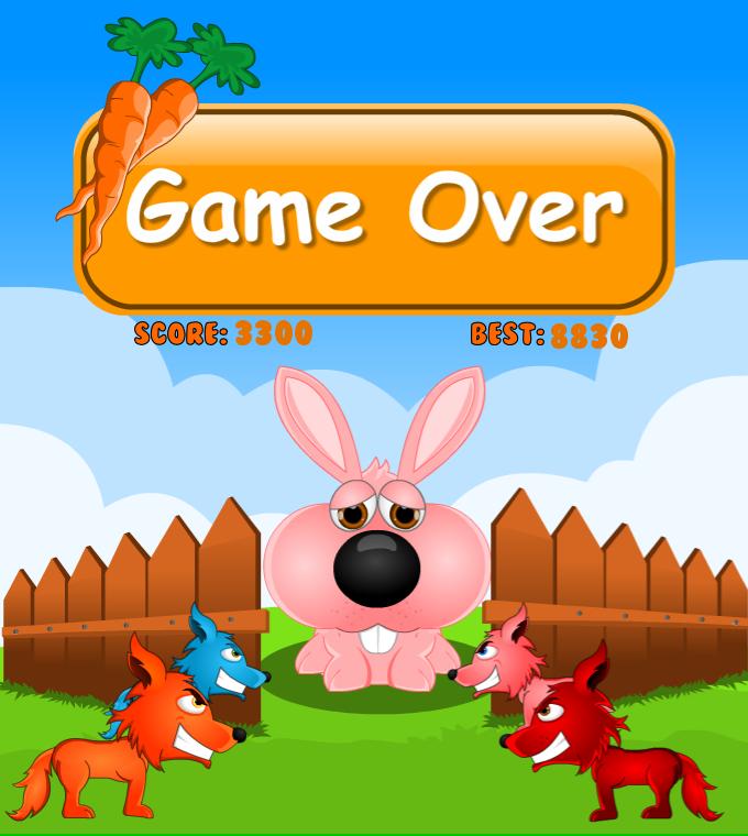 使用屏幕上的虚拟按钮四处走动,并尝试收集所有胡萝卜,以提高到一个新的水平,同时避免了四个试图追捕您的坏狼。您可以使用在每个级别上找到的特殊力量,包括速度提升,这将使您持续几秒钟,炸弹将消失狼并将其带到他们的家中。如果您设法拿起彩虹胡萝卜,那么您的小兔子将变得无敌并非常快地奔跑几秒钟,它也可以吃掉狼!这是一个每个人都会喜欢的游戏,尤其是孩子,这是一款受旧时最喜欢的Pacman启发的经典街机游戏,它是完全免费的!