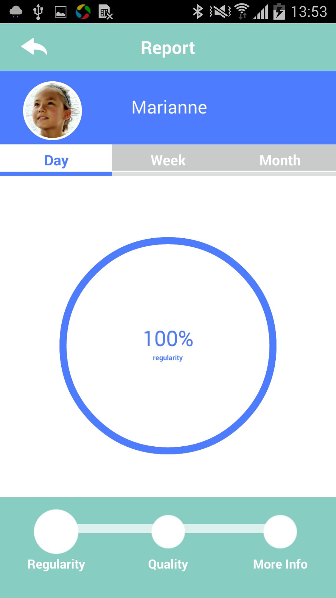 使用蓝牙,它连接到智能手机和Rainbow Junior应用,该应用分析质量和规律性