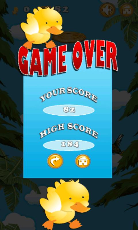 但是不要擔心。您只是小雞安全的一個。還有另一個朋友鳥可以幫助小雞跳投。如果敵人的鷹抓住了小雞,朋友伯德將救出他,並將他帶回巢繼續玩耍。但並非總是如此。你有5條生命。您錯過了第五次,比賽結束了!!!保存可愛的小雞很有趣。