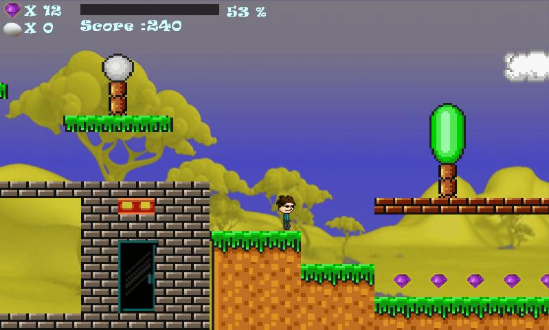 Chronicles of Pumma是一個2D Mario,就像使用Digital Wolf Studio的LibGDX框架開發的開源Android遊戲一樣。 Pumma是一個冒險的人,他在一個仙境中,必須收集越來越多的寶石和雞蛋來維持自己的健康。他必須在旅途中阻止自己擺脫有毒的蛇和可怕的龍。他必須找到鑰匙,以解鎖通往下一個水平的大門。只是慢慢去...明智...