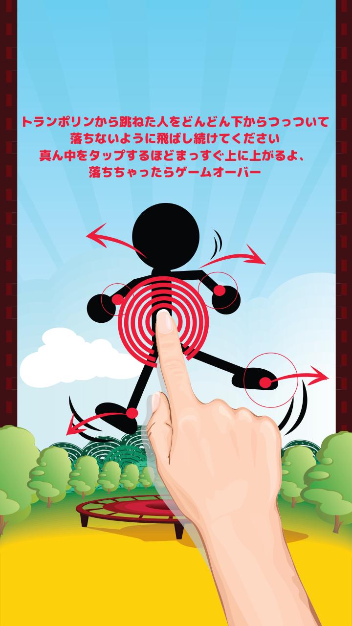 繼續在Stickman上重複敲擊,開始在The Trampoline上跳躍,以免讓Stickman掉下來。