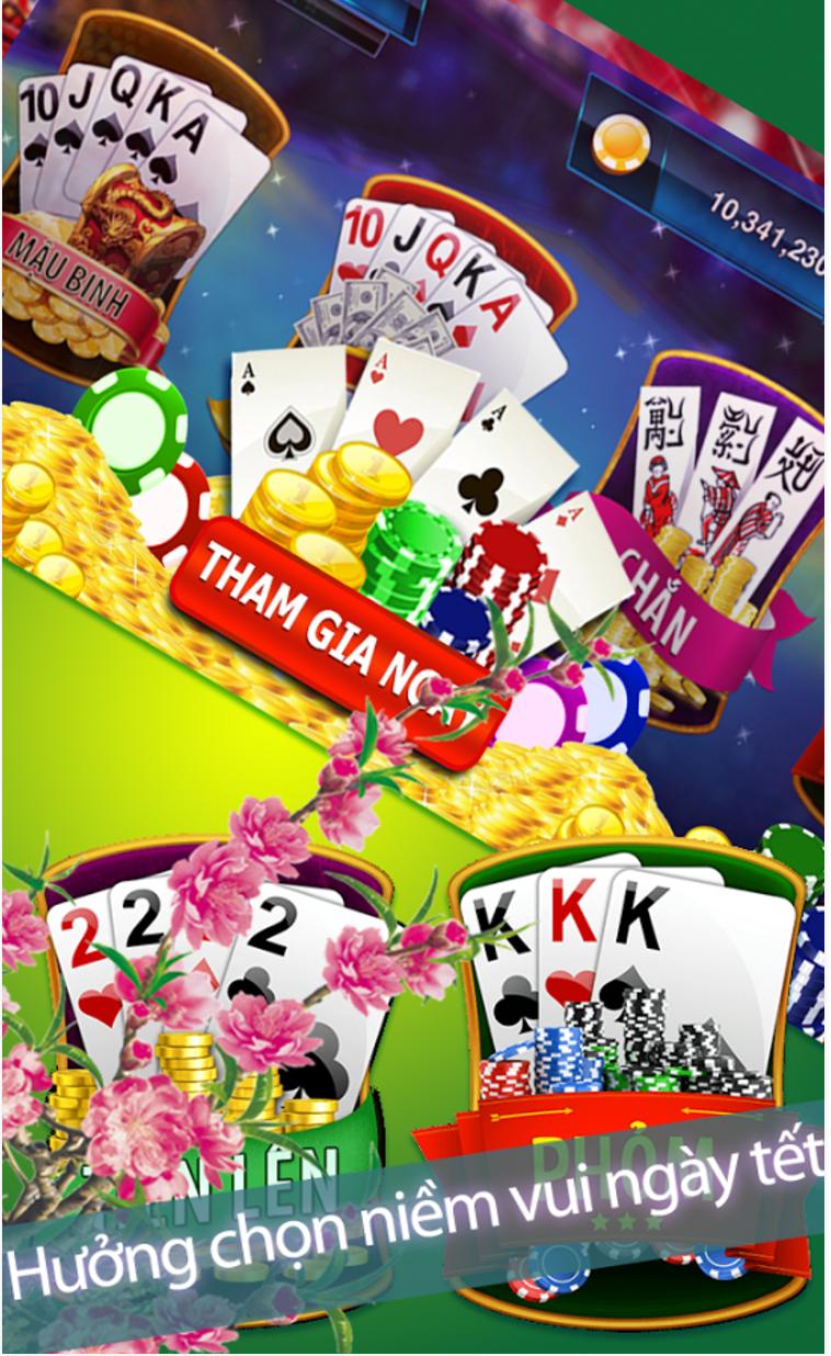 祝您新年快樂-Dai cat -dai loc!每天都有很多免費的硬幣和一系列禮物。一些典型的紙牌遊戲如下: