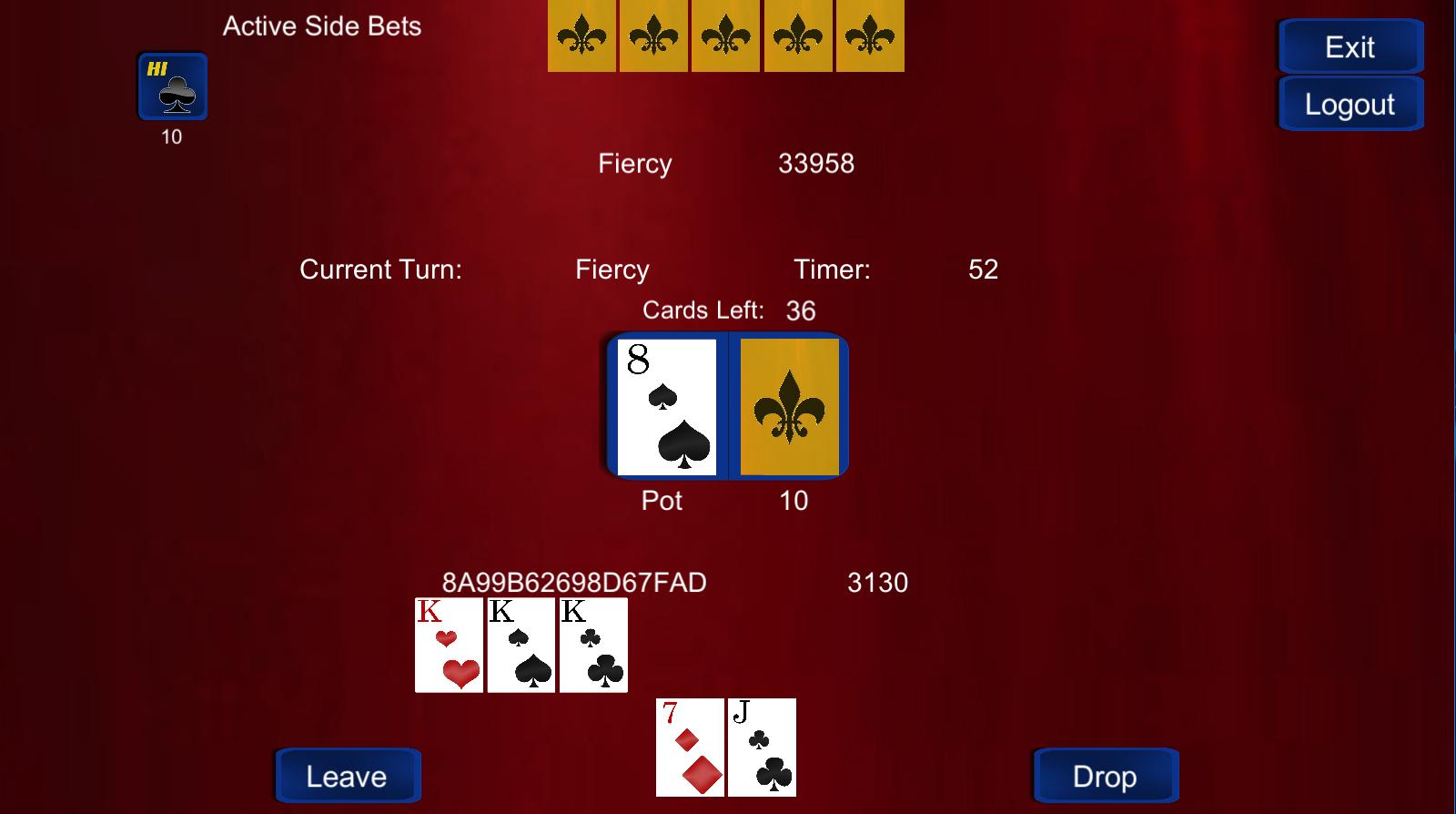 名為TonkOut的遊戲有各種各樣的側押,因此口號:“更多的下注方式和更多獲勝方式”。玩家可以下注“高卡”,“顏色對”,“單眼傑克”,“自殺王”,以及其他其他側押。玩家還可以自動贏得這場交易,50分獲得雙打和49分的收入單打。