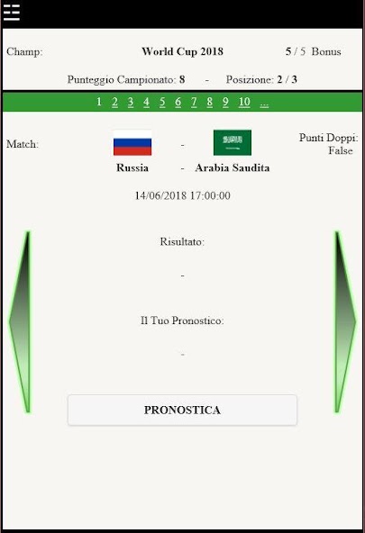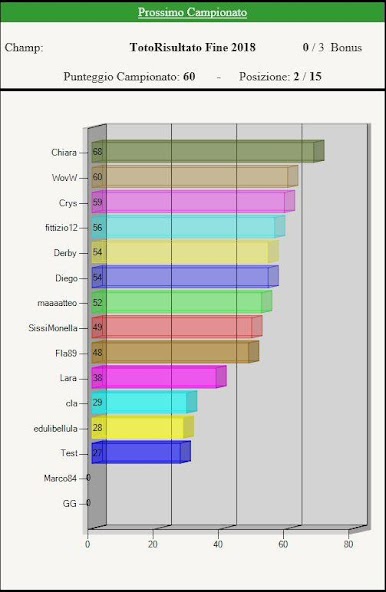 通過此應用程序,可以預測冠軍的結果。在每個遊戲中,他們將根據預測將它們從0到6分分配,最佳排名將被詳細闡述...如果您打得很好,那麼積分可以加倍! ! !